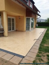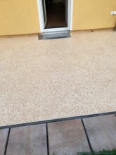 aber auch im Außenbereich verwenden, wobei der Belag in Handarbeit mit einer Glättekelle
